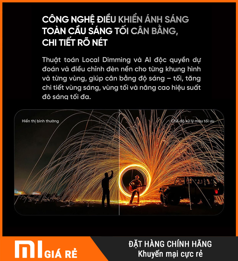 MiniLED đa vùng → kiểm soát sáng/tối chính xác hơn TV LED thường, tăng tương phản rõ rệt.