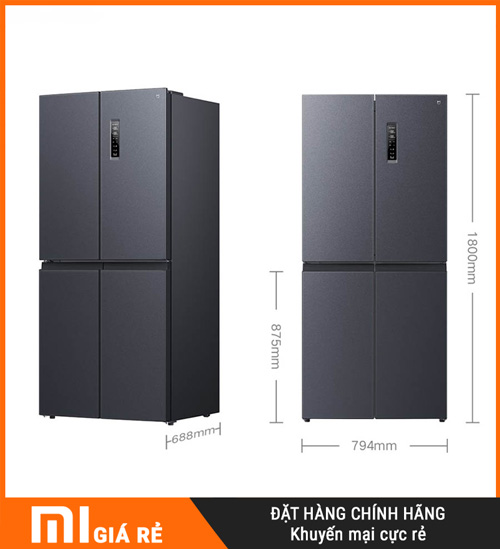 Tủ lạnh Xiaomi 430L có kích thước lý tưởng với chiều rộng 794 mm, chiều sâu 688 mm và chiều cao 1800 mm, phù hợp với hầu hết các không gian bếp, từ căn hộ nhỏ đến các gia đình có không gian rộng. Tủ lạnh này không chỉ tiết kiệm không gian mà còn mang lại sự tiện nghi và hiện đại cho ngôi nhà của bạn.